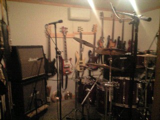 このブースと、ブース2とは遮音されているので、バンドの場合は同時に演奏して、ドラムだけを収録し、