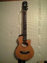 アイバニーズ 2017年7月購入。 仲良しの楽器屋さんでウクレレの出物があるというので見にいきました。 結局、そのウクレレは僕には合いませんでした。 で、店内を見渡すと、このギターが目に付きました。 新品で24800円。生音もいいのですが、ラインでも好きな音色が出ました。 特にキャノンアウトからの出力の音色がよくて、録音でも使えそうです。 現在はタカミネの後継機種としてライブで活躍しております。 |