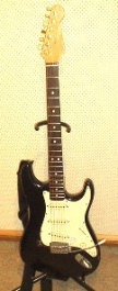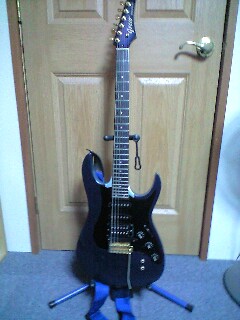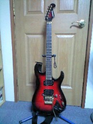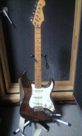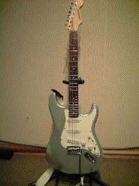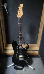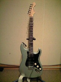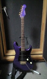 プレイテック製ST-250 元々は3シングルだったのですが2ハムにしたくて改造してもらいました。 フロントは無名、リアにはダンカンを搭載しています。 セレクターは3ポジションで、フロント、リアシングル、リアハム 2ボリュームとリアトーンで、ペグはスパーゼルに替えました。 22フレットです。ロック色の強いライブで使いましたがすごくよかったです。 ネジは2本、バネは3本、アーム仕様でフローティングはしていません。 色は現在僕が乗っている車(エアーウェーブ)と同じ色に塗り替えました。 |