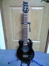 ブライアン(BY バッカス) あるイベントに行ったとき、ベースが必要になりミニアンプ付きで二万円で買いました。 ネックが細いので弾きやすく、これを購入してから、ライブも録音も、ほとんどこれを使っていました。 ハムバッキングとシングルがついているので、ライブではすごく使い勝手がいいですが、 現在はネックのそりを直すため休養中です。 |