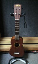 ウクレレ(中国製) 僕の音楽的なルーツはハワイアンです。小学生の時に常磐ハワイアンセンターに行き、生演奏に感動。 現在ある2本のウクレレは安物でチューニングがすぐに狂ったり、フレット音痴だったりで使えず。 ハワイアン好きな僕としてはちゃんとしたウクレレが欲しかったのですが、 2017年7月に某楽器店で出物があるからといわれて見に行った55000円のは手に合わず(ToT) その店で6480円で売っていたのがこれです。チューニングも狂わないしフレットも問題なし。 いかにもウクレレという軽い音色が気に入りました。値段もですが(^^) |