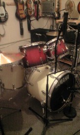| ドラムス 最初は、友人の持っていたイアン・ペイス・モデルが練習場に置いてあったので、それで練習していました。 友人が自宅に持ちかえってしまい、僕はドラムにはまっていたので、中古で20万円のフルセットを購入しました。 その後、スタジオを本業にすることになり、標準サイズのドラムセットをリサイクルショップなどで購入。 現在は、4種類のドラムセットを所有するに至りました。 |
