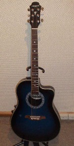 アリア 一番最初にライブ用に買いました。二万円以下でした。 表板は木ですがボディーはプラスティック? だから、どんな場所にもっていっても安心なので、かなりライブで使いました。 ただ、パッシブなので音が細くてPAの方を苦労させてしまいまして、 後述のタカミネを購入してからは引退。 一時期貸し出していましたが、今は戻ってきています。 現在はスタジオのラウンジにおいてみなさまに使ってもらっています。 |