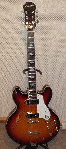 エピフォン・カジノ 知人から四万円で買いました。 ビートルズが好きならば持っていたほうがいいと いわれまして。 何度かビートルズ関連のイベントで弾きました。 また、ホローボディーならではの音が欲しいときには録音でも使いました。 ペグはゴトー製に交換。あとはオリジナルのままです。 |