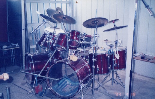 イアン・ペイス・モデル最初に練習で借りていたセットは、結局、僕が買取りました。 パールで、26インチのバスドラム、13、14のタム、16、18のフロアタム。 シンバルはパイステで、20のクラッシュとクラッシュライド、24インチのライド。 これは、スタジオ利用者には叩くのが難しいセットなので今は倉庫に眠っています。 14インチのタムには足をつけられるようにして、フロアタムにも使えるように改造。 18インチのフロアタムはバスドラにも使えるように改造してあります。 |