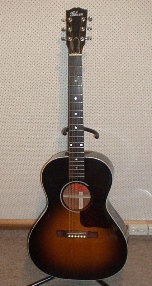 ギブソン L−00 知人からもらいました。その知人ももらいものだったそうで、 ネックの握り具合が気に入らないからいらないといわれて ラッキーでした。 パワーのあるマイクが内蔵されています。 いわゆるブランド物では、僕が唯一持っているギターです。 現在はラウンドワウンドの弦をはって、もっぱら歌の伴奏に使っています。 ブランド物の扱いに慣れていないため、持ち出すこともなく、大切にしています。 |