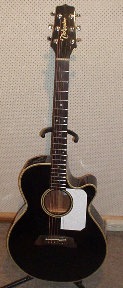 タカミネ PT-106 中古です。一万円で買いました。これを手に入れたので、前述のアリアは引退ということになりました。 傷がひどいのですが、音には 影響しません。 自分でつけたピックガードはかっこ悪いので今はついていません。 アクティブだし、ライブでの音作りが楽なので ライブでは10年以上活躍してくれました。 僕のライブをみたことのある人は、このギターのイメージが強いんじゃないかな。 現在はフレットの打ち替えが必要になったため休養中です。 |
