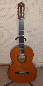ヤマハのガット・ギター(C120) 僕がギターを弾くきっかけは中学生の時に、知り合いからガットギターをもらったこと。 教則本ももらって独学で始めました。それからS&Gを知りフォークギターに乗り換えたため放置。 で、宅録をするようになって使おうと思ったら、ネックとボディーのつなぎ目が剥がれていました。 知り合いのギター工房で修理してもらおうと思ったら、安物なのでといわれてあきらめました。 もちろん、捨てずにしまってあります。 すると、知人が、使っていない ガット・ギターがあるからあげるということで僕の元にきました。 弾きこんだら、いい音になりました。録音でも使っています。 |