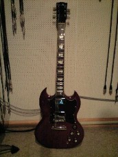 フォトジェニック製のSGモデル リサイクルショップで5000円で購入。 音を出してみたのですが、僕にとっては不満のない音でした。 いつかは欲しいと思っていたモデルなので、気分は最高です。 フレットの状態が悪くて、最初はパーツ取りにつかおうと思っていましたが、 自分ですり合わせたら問題がなくなりました。野外ライブで何度も使いました。 |