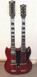 グレコ・ダブルネック 東京で暮らしていた頃、ギブソンがダブルネックの生産を終了するという話を聴きました。 イーグルスやレッド・ツェッペリン好きとしては持っていたいギターですが本物は高くて買えません。 神田の中古ショップで発見し、九万円で買いました。僕にとって一番高価なギターの買い物でした。 その後、本物のギブソンを持っている人が弾いたら、それより音がいいよと言っていました。 グレコは最近プレミア銘柄らしく、これもネットのオークションでは高値がついているそうです。 何度もライブで使っているし12弦のほうは録音でよく使いました。オリジナルスペックのままです。 |