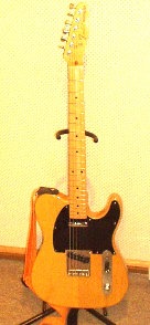 メイカー不明(自作) 音楽仲間からネックとボディーをもらったので、自分で組み立てました。 回路は、上記プレイテックのものを取り付けました。 ミニスイッチで、フロント+リア、スイッチングができるよう改造してあります。 ライブでは結構使っています。音もお気に入りです。 ネジは4本、バネは3本でフローティングはしていません。 |